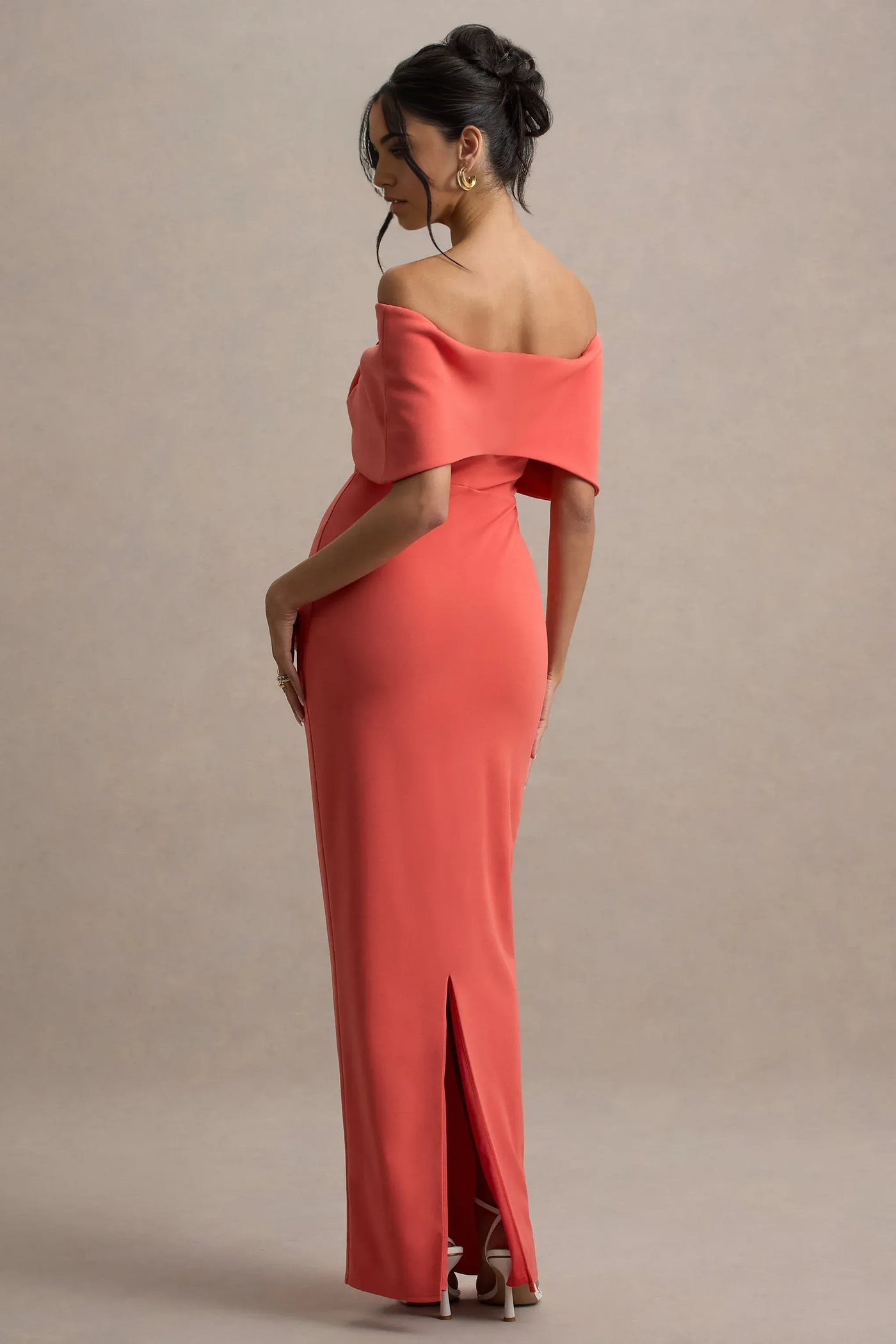This evening dress features a sheath silhouette that offers a sleek and streamlined fit. The off-shoulder neck design brings a classic and daring touch, while the sleeveless style provides a balanced and refined look. The bow accent and back slit detail add elements of stylish allure, enhancing the dress's overall appeal. With a floor-length design, it's ideal for evening events, ensuring the wearer looks daring and poised.