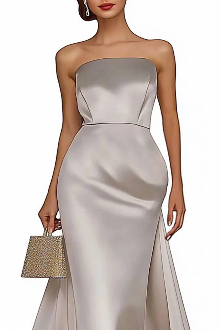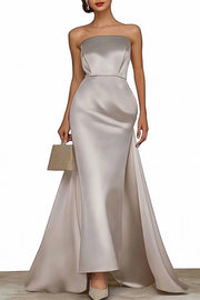 Evening Formal Dress Satin Tube Top Train Long Dress