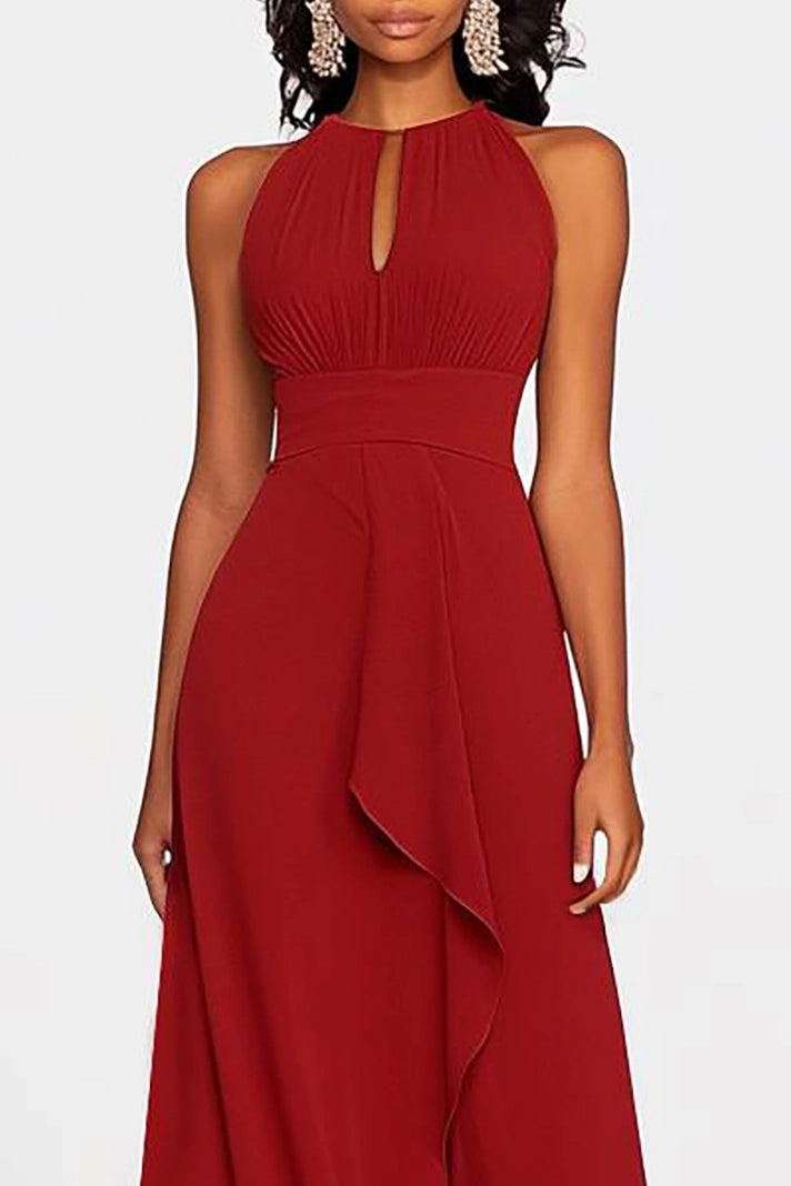 Evening Party Halter Dress Sleeveless Ruffle Draped Maxi Dress