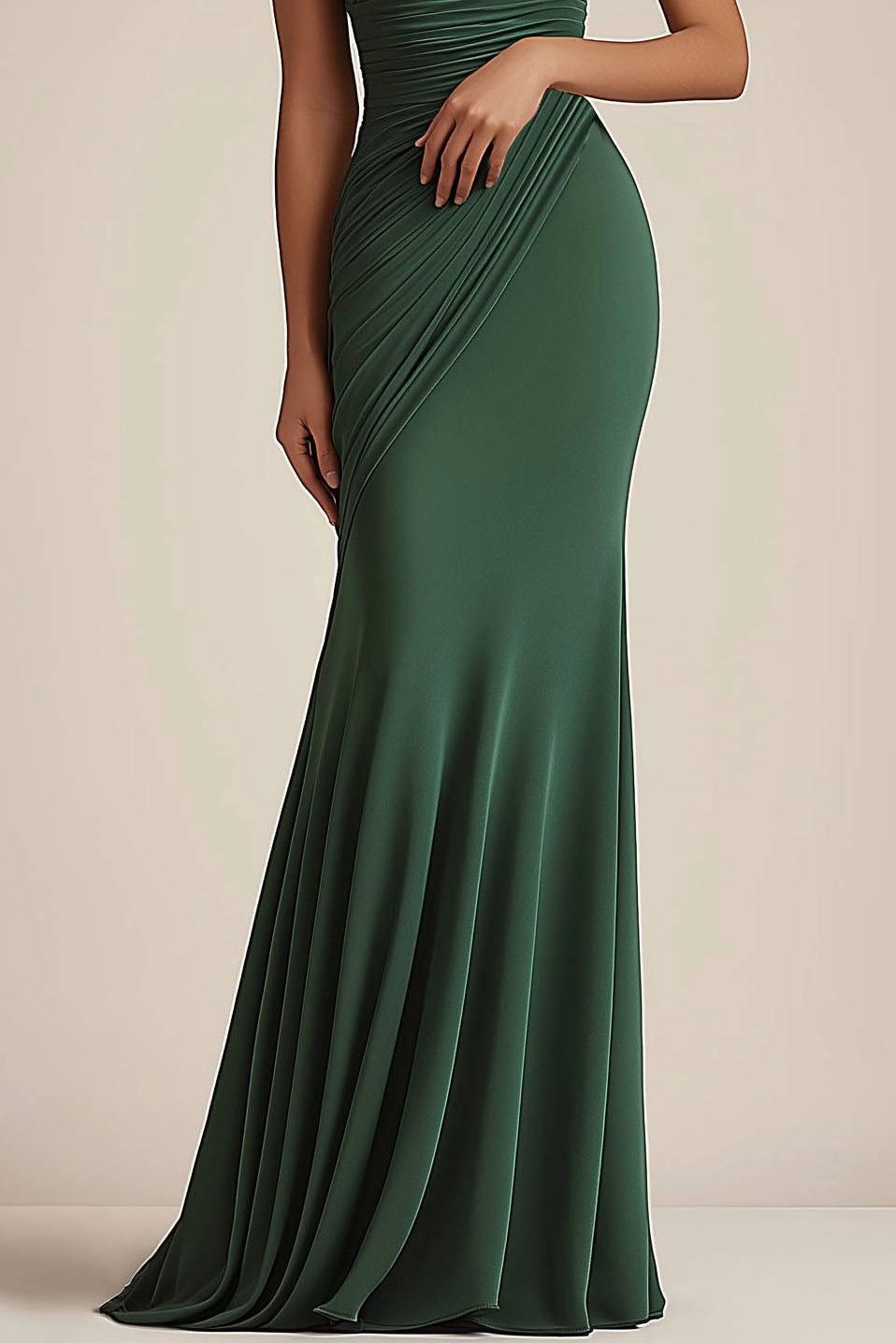 Formal Evening Dress Green V-Neck Pleated Mermaid Floor-Length Gown
