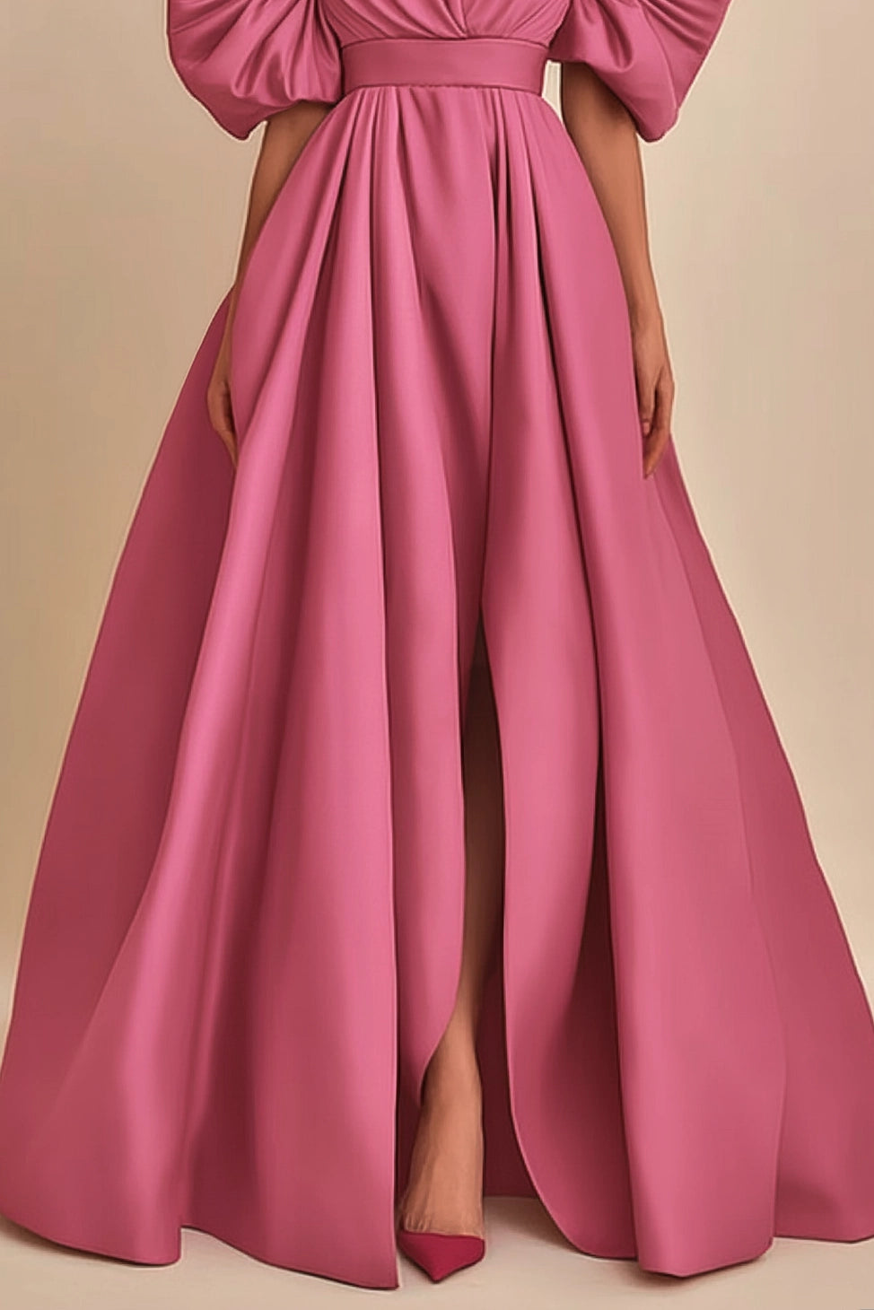 Formal Prom Dress Pink Off-Shoulder Side Slit Floor-Length Dress