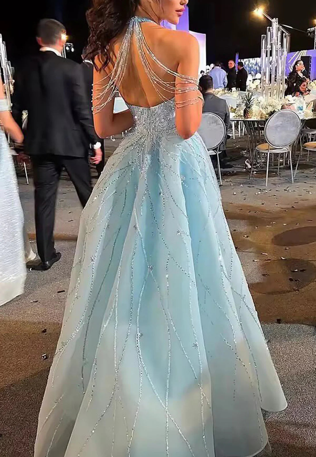 Halter Sleeveless Beaded Embroidery Sheath Sparkly Evening Dress simple gentle atmospheric and unique desi Bring summer colors to enhance whiteness