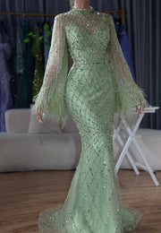 High Neck Long Sleeves Beaded Embroidery Sparkly Mermaid Evening Dress simple gentle atmospheric and unique desi Bring summer colors to enhance whiteness