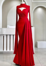 High Neck Long Sleeves Pleated Mermaid Formal Dress simple gentle atmospheric and unique desi Bring summer colors to enhance whiteness