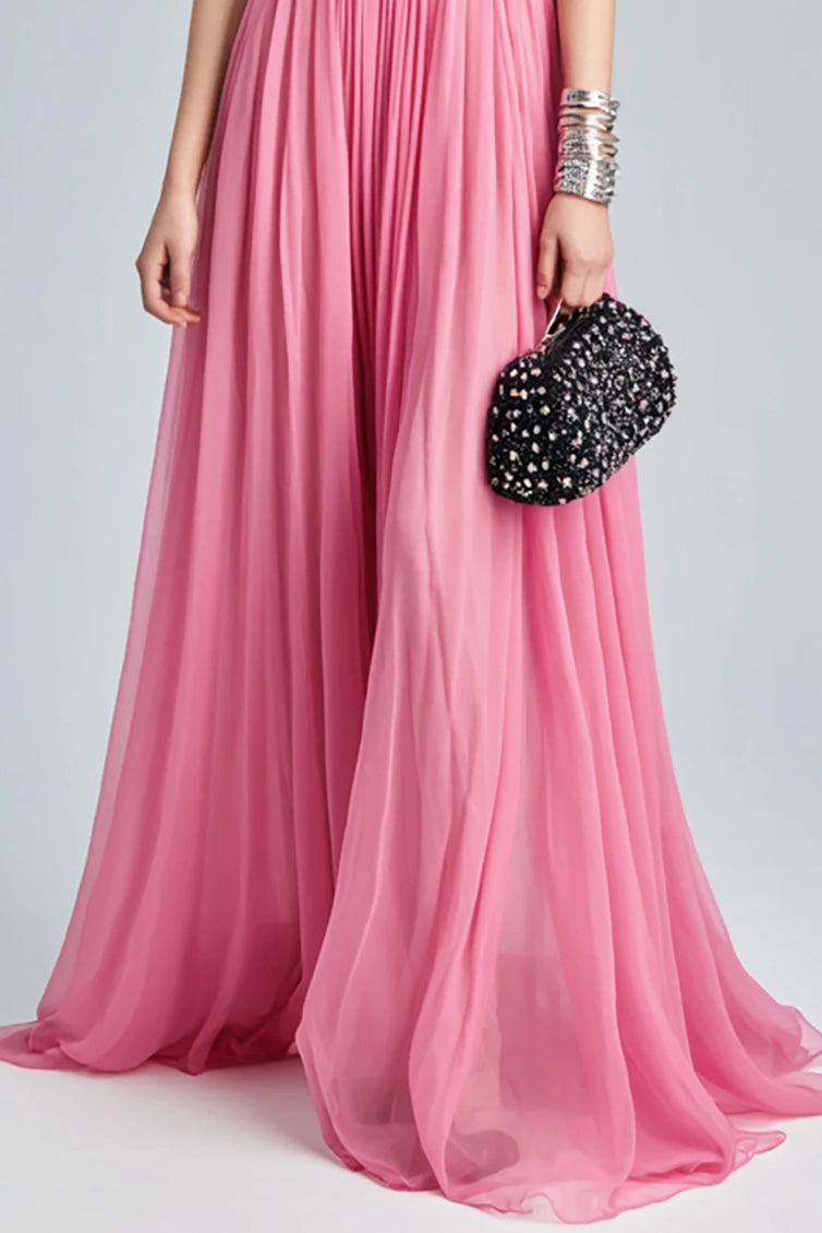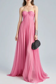 Holiday Evening Dress Pink Strapless Ruched Floor Chiffon Dress