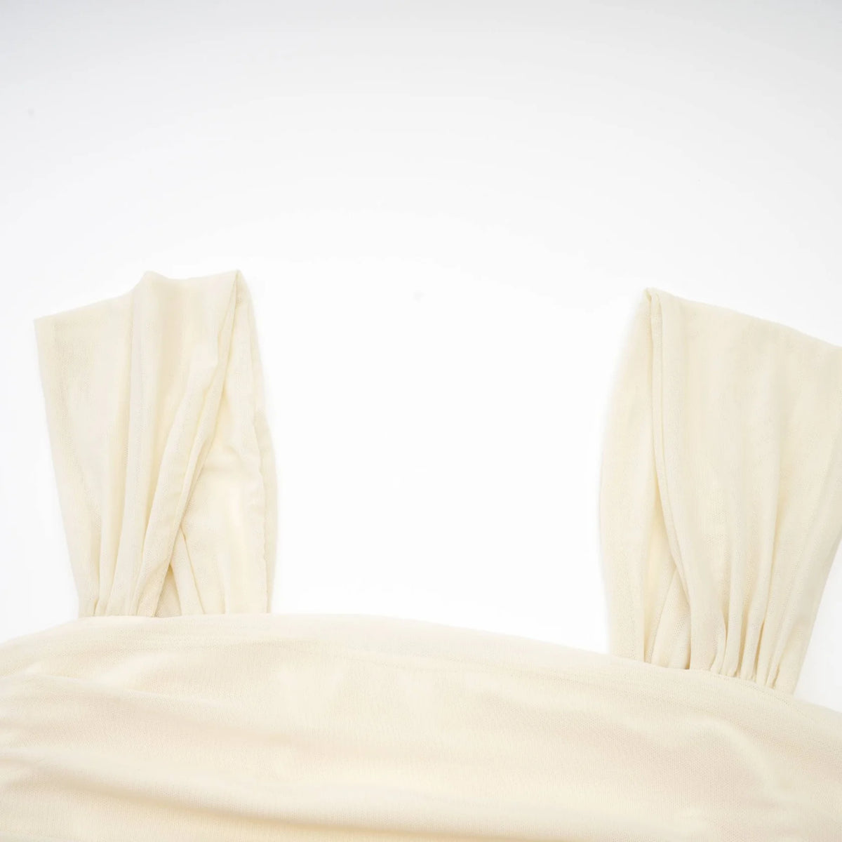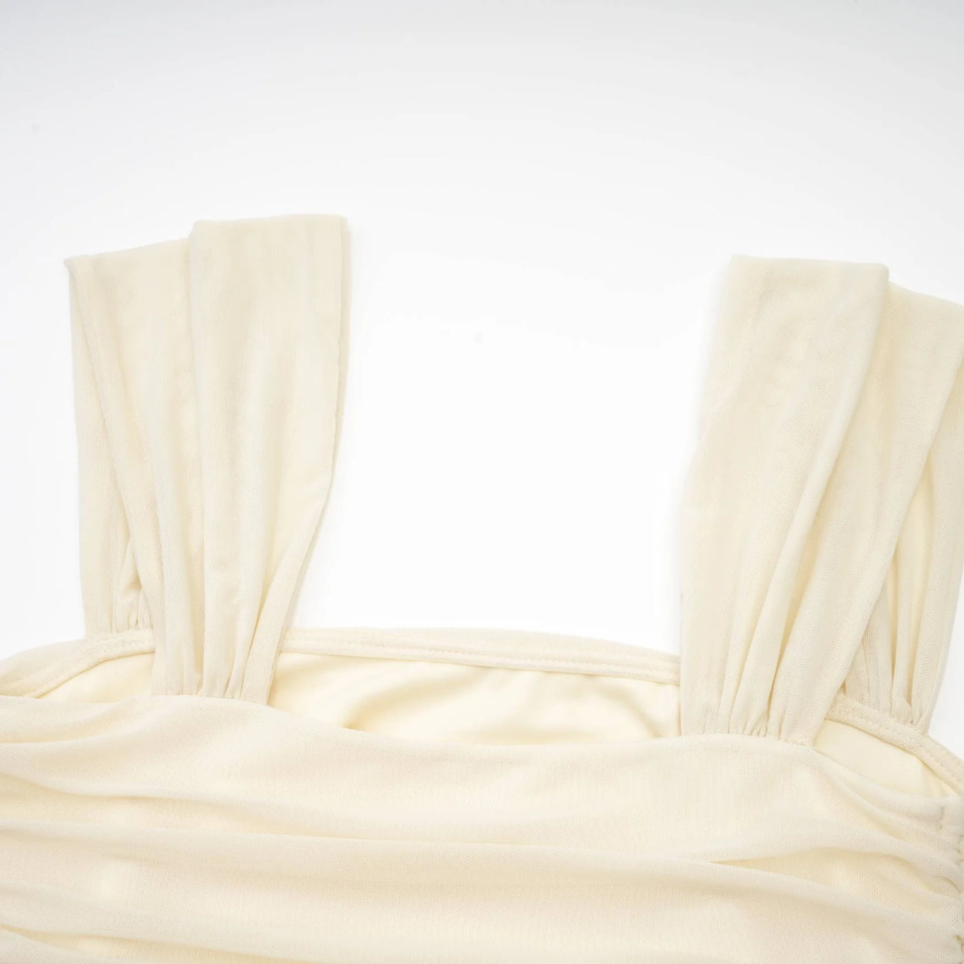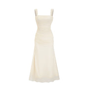 Ivory Ruched Square Neck Midi Dress Giulia off-white mesh pleated midi dress Evening Dress Prom, black tie events, formal weddings, and upscale parties