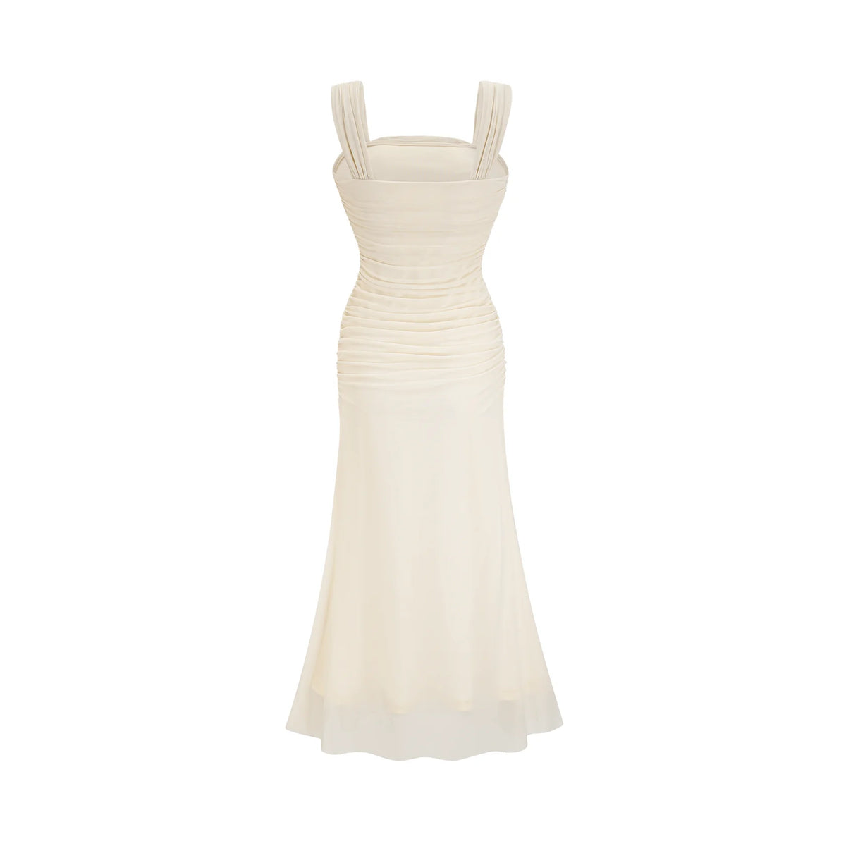 Ivory Ruched Square Neck Midi Dress Giulia off-white mesh pleated midi dress Evening Dress