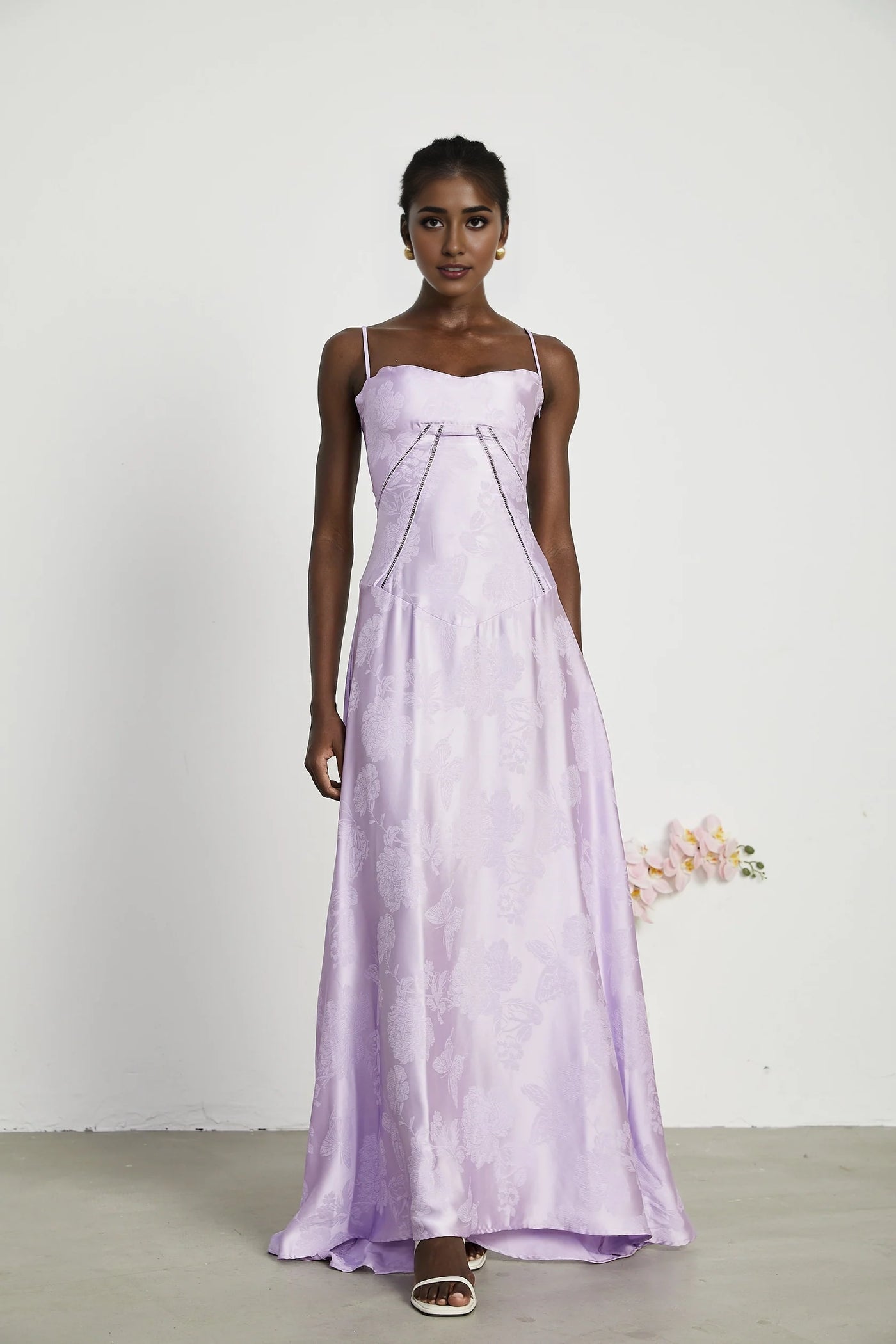 Lavender Floral Jacquard Lace - Up Back Maxi Dress Adabella floral maxi dress Evening Dress Prom, black tie events, formal weddings, and upscale parties