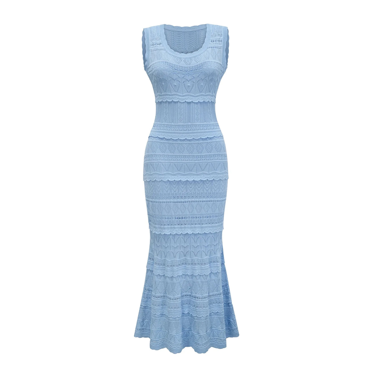 Light Blue Sleeveless Crochet Maxi Dress Mailys blue ruffled-trim crochet-knit midi dress Evening Dress Prom, black tie events, formal weddings, and upscale parties