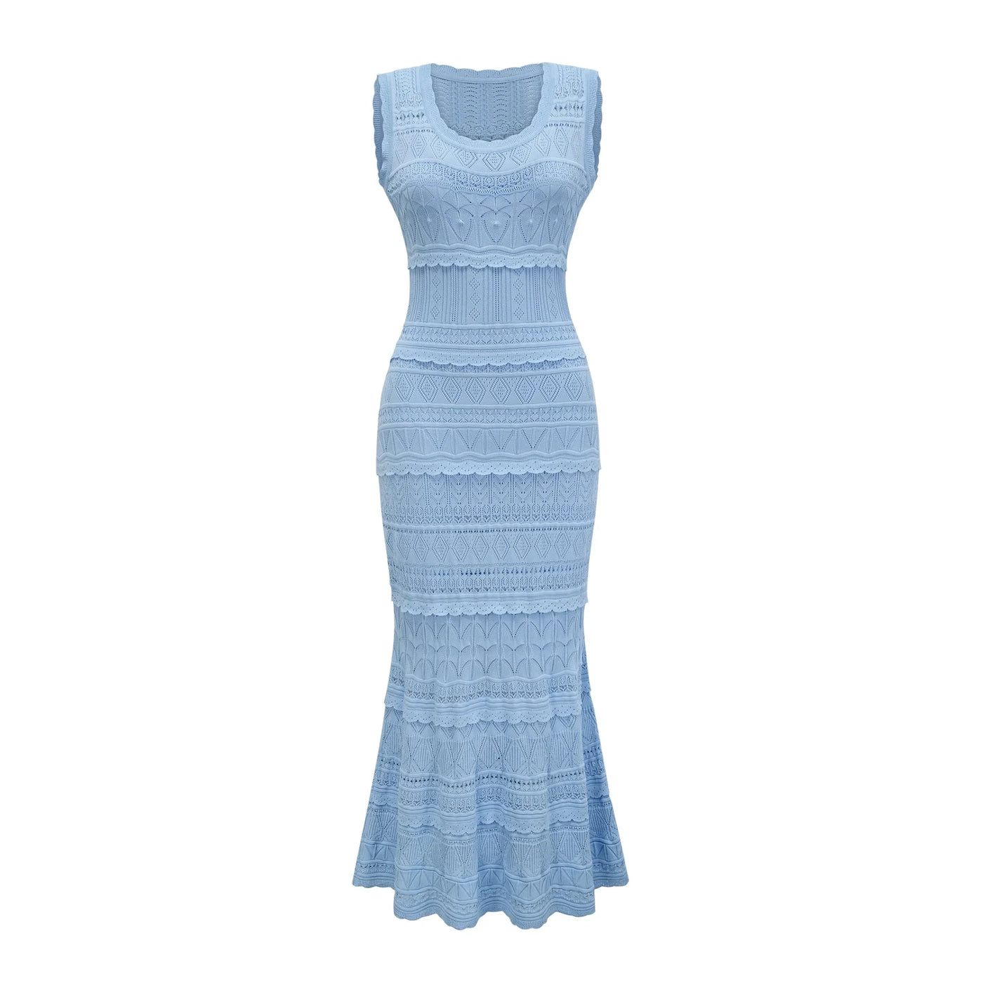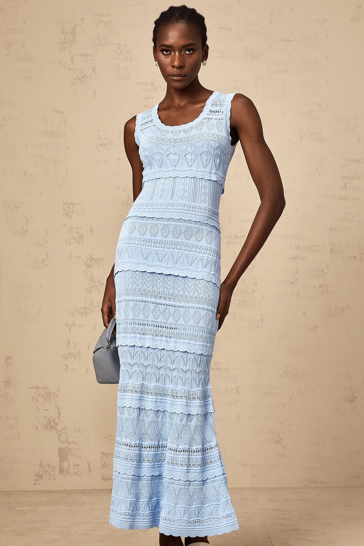 Light Blue Sleeveless Crochet Maxi Dress Mailys blue ruffled-trim crochet-knit midi dress Evening Dress