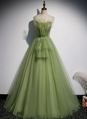 Light green gauze dress strap design suitable for dinner parties Prom, black tie events, formal weddings, and upscale parties