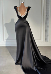 Low V-Neck Straps Cap Sleeves Beaded Evening Dress Sheath Prom Dress simple gentle atmospheric and unique desi Bring summer colors to enhance whiteness