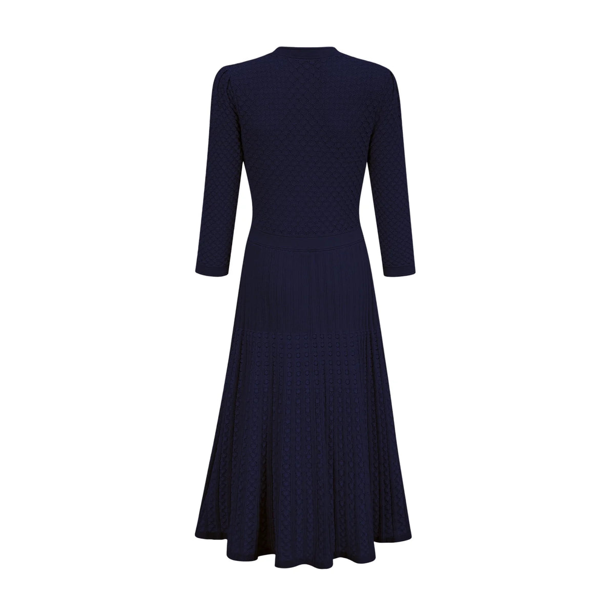 Navy Blue Button - Front Midi Dress with Textured Detail knitted long-sleeve midi dress in Blue Evening Dress - US 2 / UK 6 / EU 32