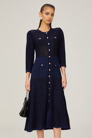 Navy Blue Button - Front Midi Dress with Textured Detail knitted long-sleeve midi dress in Blue Evening Dress Prom, black tie events, formal weddings, and upscale parties