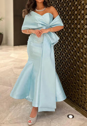 Off-Shoulder Cap Sleeves Sleek Satin Mermaid Evening Dress simple gentle atmospheric and unique desi Bring summer colors to enhance whiteness