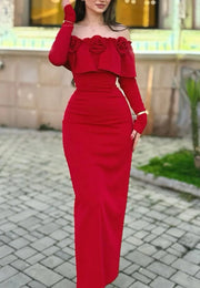 Off-Shoulder Floral Long Sleeves Mermaid Evening Dress simple gentle atmospheric and unique desi Bring summer colors to enhance whiteness