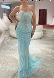 Off-Shoulder Sleeveless Beaded Embroidery Mermaid Sparkly Prom Dress simple gentle atmospheric and unique desi Bring summer colors to enhance whiteness