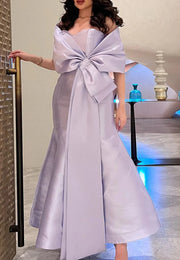 Off-Shoulder Sleeveless Bowknot Satin Evening Dress Mermaid Mother of Birde Dress simple gentle atmospheric and unique desi Bring summer colors to enhance whiteness