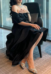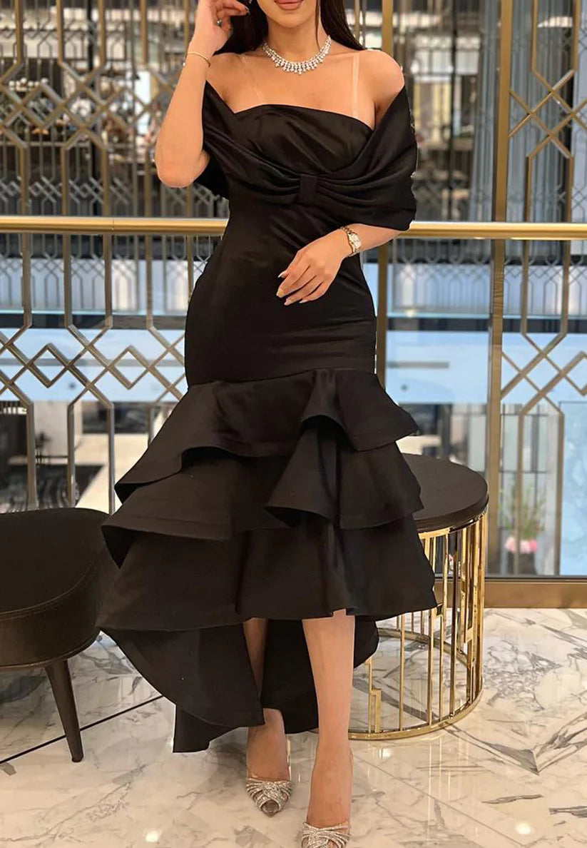 Off-Shoulder Sleeveless Tiered Mermaid Evening Dress simple gentle atmospheric and unique desi Bring summer colors to enhance whiteness