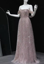 Off-Shoulder Strapless Beaded Embroidery A-Line Sparkly Prom Dress simple gentle atmospheric and unique desi Bring summer colors to enhance whiteness