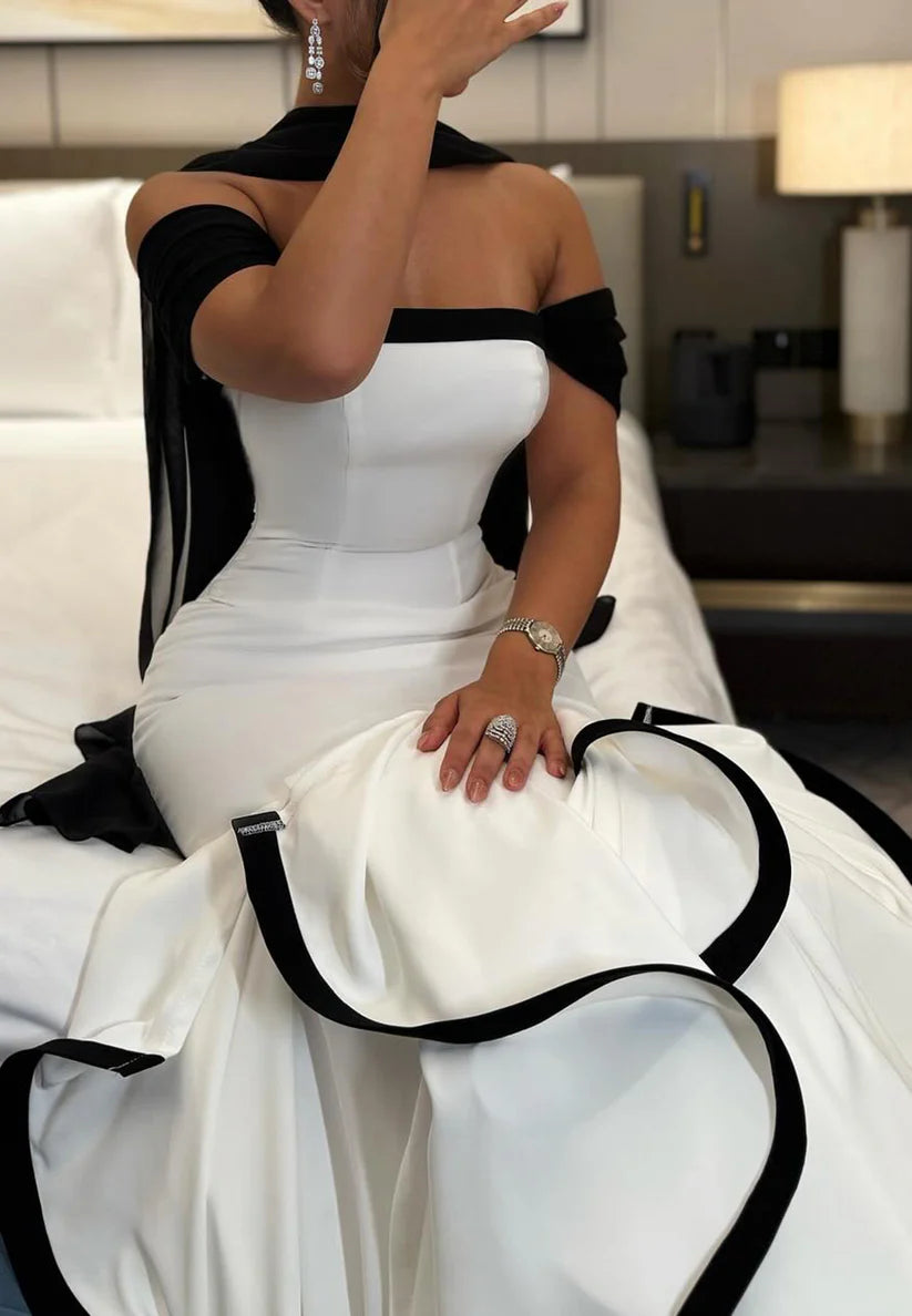 Off-Shoulder Tiered Ruffled Mermaid Evening Dress simple gentle atmospheric and unique desi Bring summer colors to enhance whiteness
