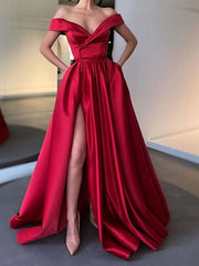 Off the Shoulder Burgundy Satin Long Prom Dresses Off Shoulder Wine Red Long Formal Evening Dresses