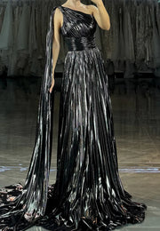 One Shoulder Sleeveless Pleated A-Line Prom Dress simple gentle atmospheric and unique desi Bring summer colors to enhance whiteness