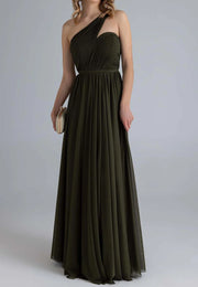 One Shoulder Sleeveless Pleated Formal Dress A-Line Evening Dress simple gentle atmospheric and unique desi Bring summer colors to enhance whiteness