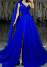 One Shoulder Sleeveless Tulle Pleated Ball Gown Prom Dress simple gentle atmospheric and unique desi Bring summer colors to enhance whiteness