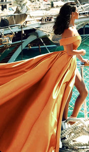 Orange satin dress with one shoulder design, suitable for dinners, yacht parties and other occasions Prom, black tie events, formal weddings, and upscale parties