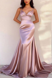 Party Prom Dress Pink Spaghetti Strap Satin Floor Length Dress
