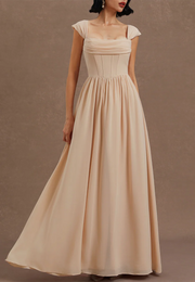 Pink Classic Square Neck Sleeveless A-Line Maxi Dress simple gentle atmospheric and unique desi Bring summer colors to enhance whiteness