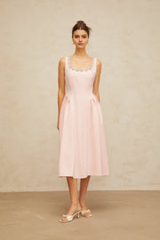 Pink Sleeveless Midi Dress with Crystal Embellished Neckline pink crystal pleated midi dress Evening Dress