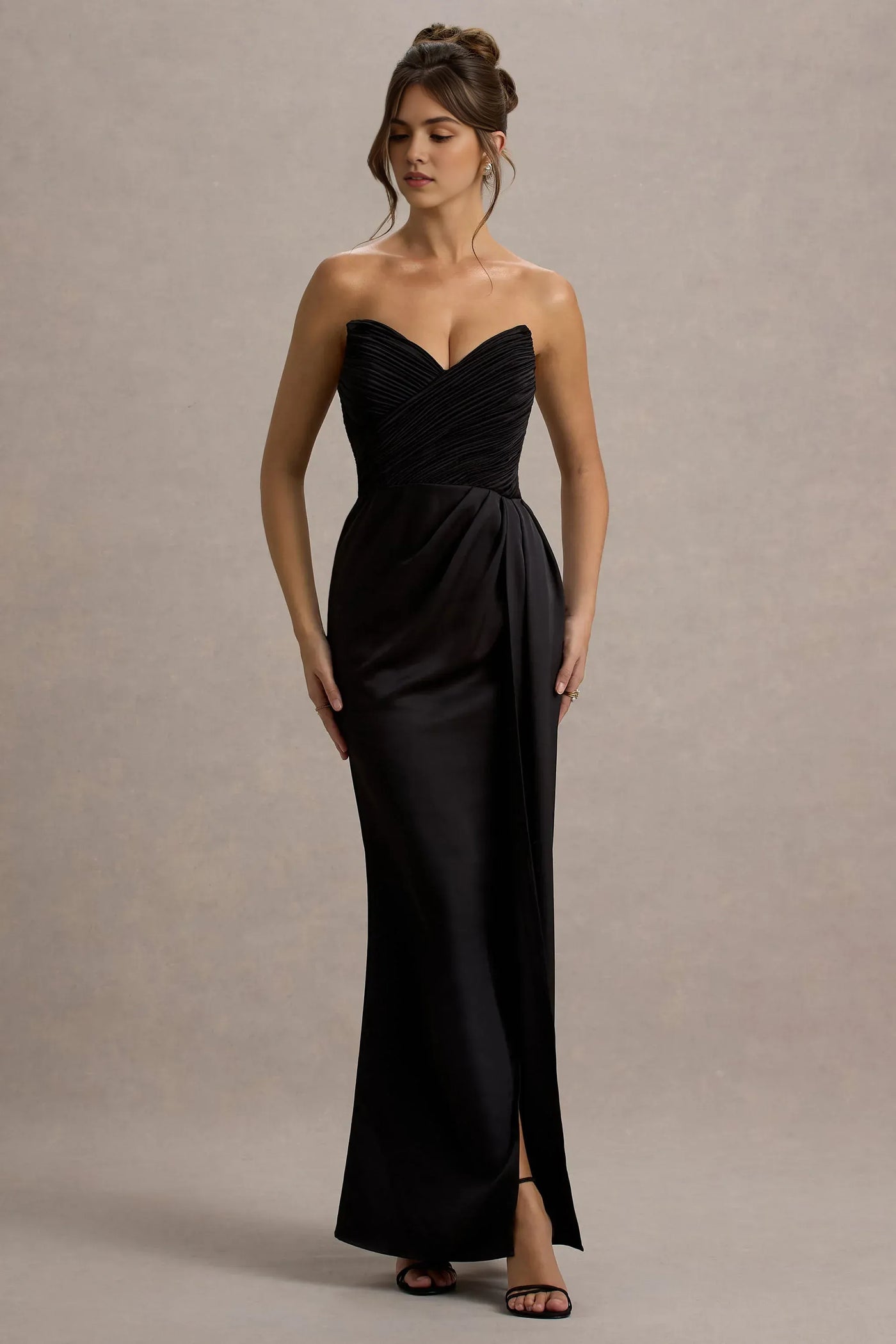 This evening dress has a sheath silhouette for a sleek, figure-hugging fit. The sweetheart neck brings a refined, soft touch, while the strapless style keeps it elegant. The ruched-back detail adds texture, and the floor-length fit makes it ideal for evening events helping the wearer feel confident and put-together.