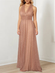 Princess Plunging V Metallic Halter Floor-Length Mother of the Bride Dresses simple gentle atmospheric and unique desi Bring summer colors to enhance whiteness - US 2 / UK 6 / EU 32