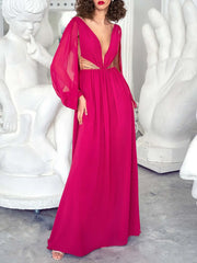Princess V-Neck Long Sleeves Floor-Length Evening Dress with Watteau Train simple gentle atmospheric and unique desi Bring summer colors to enhance whiteness