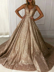 Princess V-Neck Sleeveless Long Prom Dresses With Sequins simple gentle atmospheric and unique desi Bring summer colors to enhance whiteness