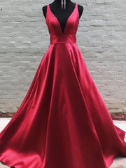 Red satin dress with deep V-strap design, high waist and large skirt suitable for dinners, dances and other occasions Prom, black tie events, formal weddings, and upscale partie