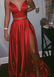 Red satin set, camisole deep V short top suitable for dinners, dances and other occasions Prom, black tie events, formal weddings, and upscale parties