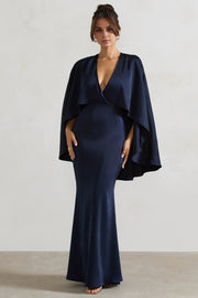 Regal Mermaid Deep V Cape Sleeve Open Back Evening Dress Prom Homecoming Mother of the Bride Bridesmaid Dresses, black tie events, formal weddings, and upscale parties
