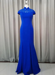 Royal blue dress, Chinese standing collar, lace patchwork collar suitable for dinners, Chinese events, etc Prom, black tie events, formal weddings, and upscale parties