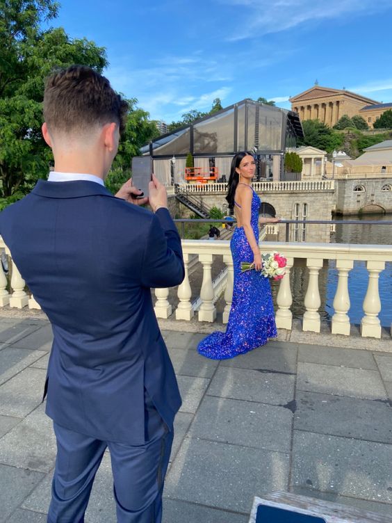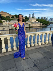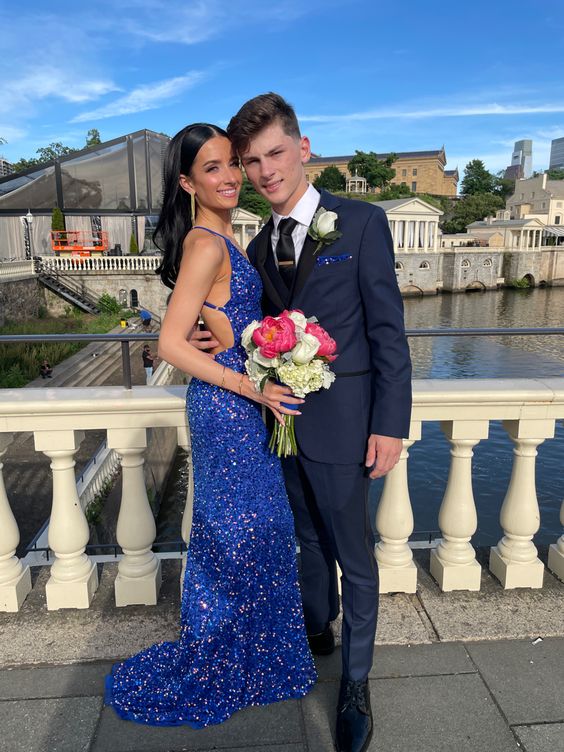 Royal Blue Sequin Mermaid Prom Dresses Evening Party Formal Gowns