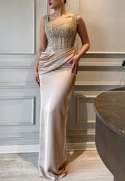 Scoop Straps Pleated Beading Sleek Mermaid Evening Dress simple gentle atmospheric and unique desi Bring summer colors to enhance whiteness