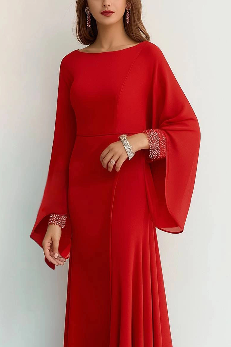 Semi-formal Party Dress Chiffon Bell Sleeve Rhinestone Cuffs Maxi Dress