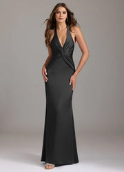 Sleek Mermaid Halter Plunging V Neck Sleeveless Tie Back Evening Dress Prom Evening Homecoming Mother of the Bride Bridesmaid Dresses, black tie events, formal weddings, and upscale parties