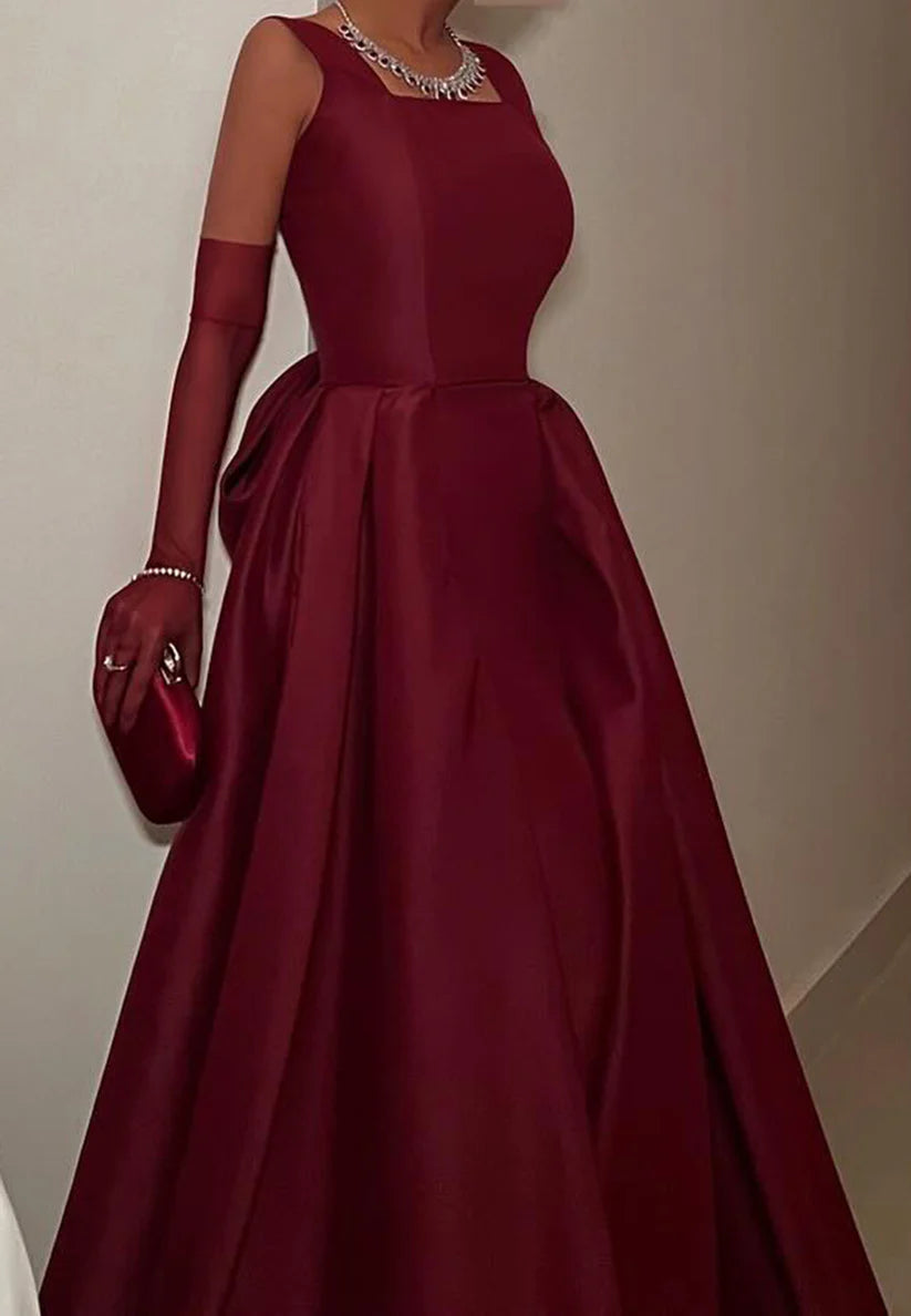 Square Straps Sleeveless Bowknot Satin Seek A-Line Evening Dress simple gentle atmospheric and unique desi Bring summer colors to enhance whiteness