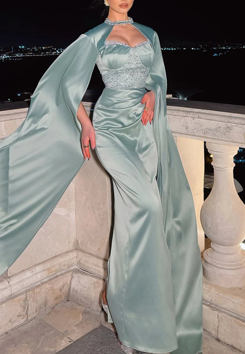 Sweetheart Long Sleeves Beaded Pleated Mermaid Evening Dress simple gentle atmospheric and unique desi Bring summer colors to enhance whiteness