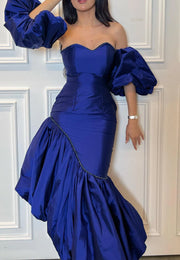 Sweetheart Puff Sleeves Pleated Mermaid Formal Dresss simple gentle atmospheric and unique desi Bring summer colors to enhance whiteness