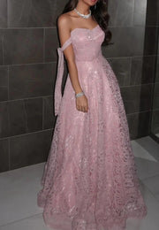 Sweetheart Sleeveless Lace Appliques A-Line Prom Dress simple gentle atmospheric and unique desi Bring summer colors to enhance whiteness