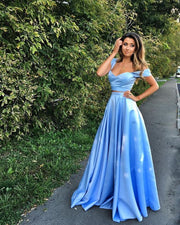 Two Piece Satin Off Shoulder Long Evening Dress Wedding Party Dress